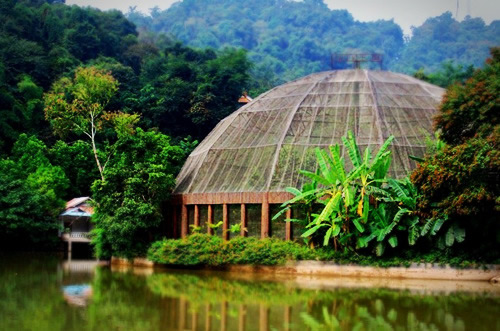 园内按四星级标准修建的孔雀山庄,以休闲度假中心形式设计建设,展现雨林怀抱中的绿色生活。山庄拥有客房51套,其中标准间45间,套房6间。水上餐厅能容纳200人同时进餐,可提供各类民族特色菜品和独具风情的傣家长桌宴。山庄内设有两间中型多功能会议厅,设有专业中控设备和音响设备,能够提供各种多媒体服务。