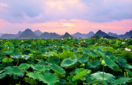 普者黑,为彝族语言,意为“盛满鱼虾的湖泊”, 湖水清澈,游鱼可数。登高眺望,似21公里长的一串珍珠,熠熠闪亩荷花洒在水面,荷叶翠绿,花色多样,亭亭玉立,荡舟穿行其间,清香扑鼻,令人陶醉,如置身于诗画之中。......