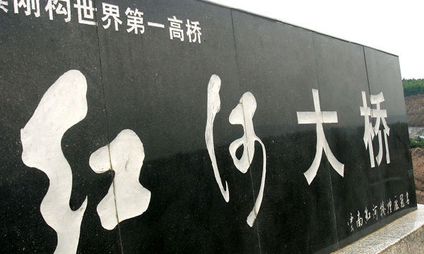 红河大桥在昆明通往泰国的G213高速公路上,有一段跨越云南元江(由元江至磨黑)的高速公路长预应力混凝土连续钢构桥,现被冠名为红河大桥。此桥长801米,宽20余米,桥的最大跨径265米(是中国第二大跨径桥),桥面距江面高度163米,是迄今同类同型桥梁中的世界第一高桥。