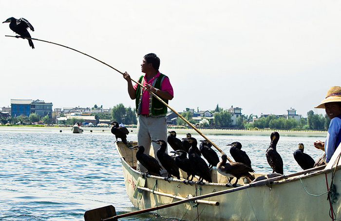 大理鱼鹰因渔民驯养有方,被培养成最通人性的鱼鹰,在主人优美的歌声引领下,鱼鹰捕到鱼后会主动靠船,把猎物交给主人。这一整套极为珍贵的驯鹰技艺,至今仍留在驯鹰人世代相教的口语秘传中,没有形成任何文字记载。千百年来渔民和鱼鹰在洱海相依为命,构成了一幅人与自然和谐共处的自然画卷!